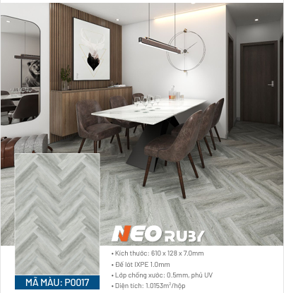 Sản phẩm SPC NEO RUBY là một bước tiến vượt bậc trong dòng sàn đá SPC, kế thừa những tinh hoa từ công nghệ sản xuất sàn hiện đại nhất hiện nay. Với cấu trúc sàn cốt đá vững chắc, bề mặt mô phỏng vân gỗ tự nhiên sống động, NEO RUBY mang đến trải nghiệm không gian ấm cúng, sang trọng nhưng không kém phần mạnh mẽ và an toàn.